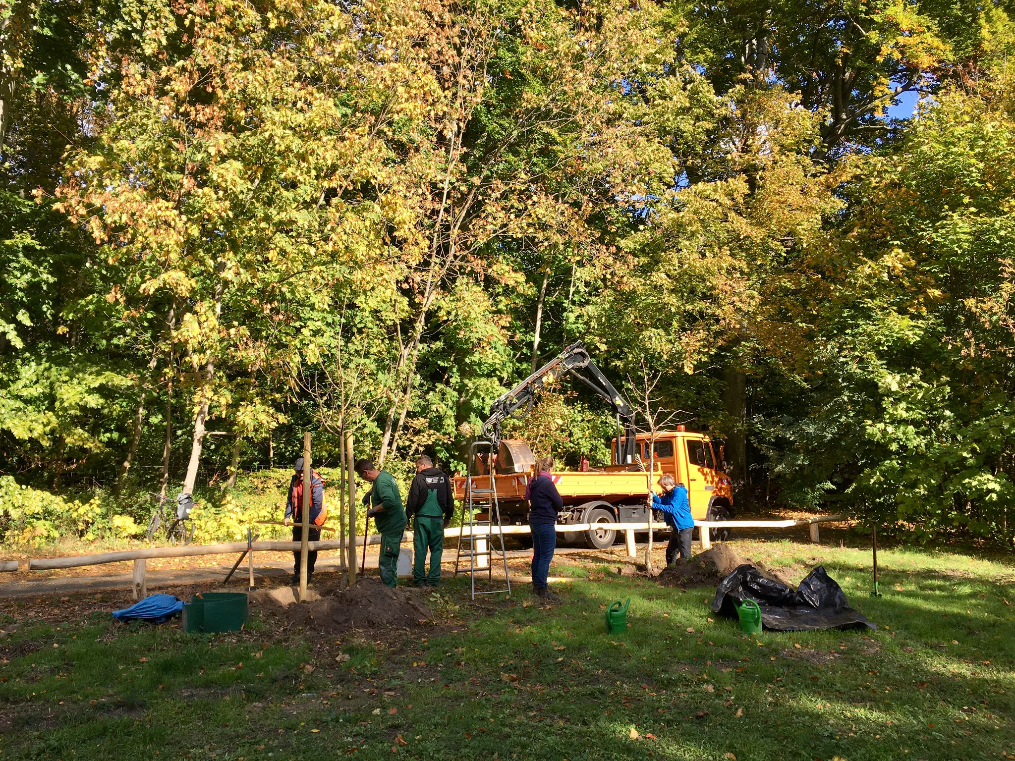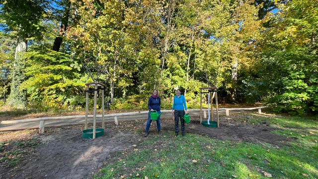 Am 12.10.2022 haben wir mit Unterstützung des Grünflächenamtes Potsdam zwei Obstbäume am Spielplatz gepflanzt. Beide Bäume (ein Apfel und ein Kirschbaum) sind ‚alte‘ Sorten und stammen aus der Obstbaumschule Kladow.
