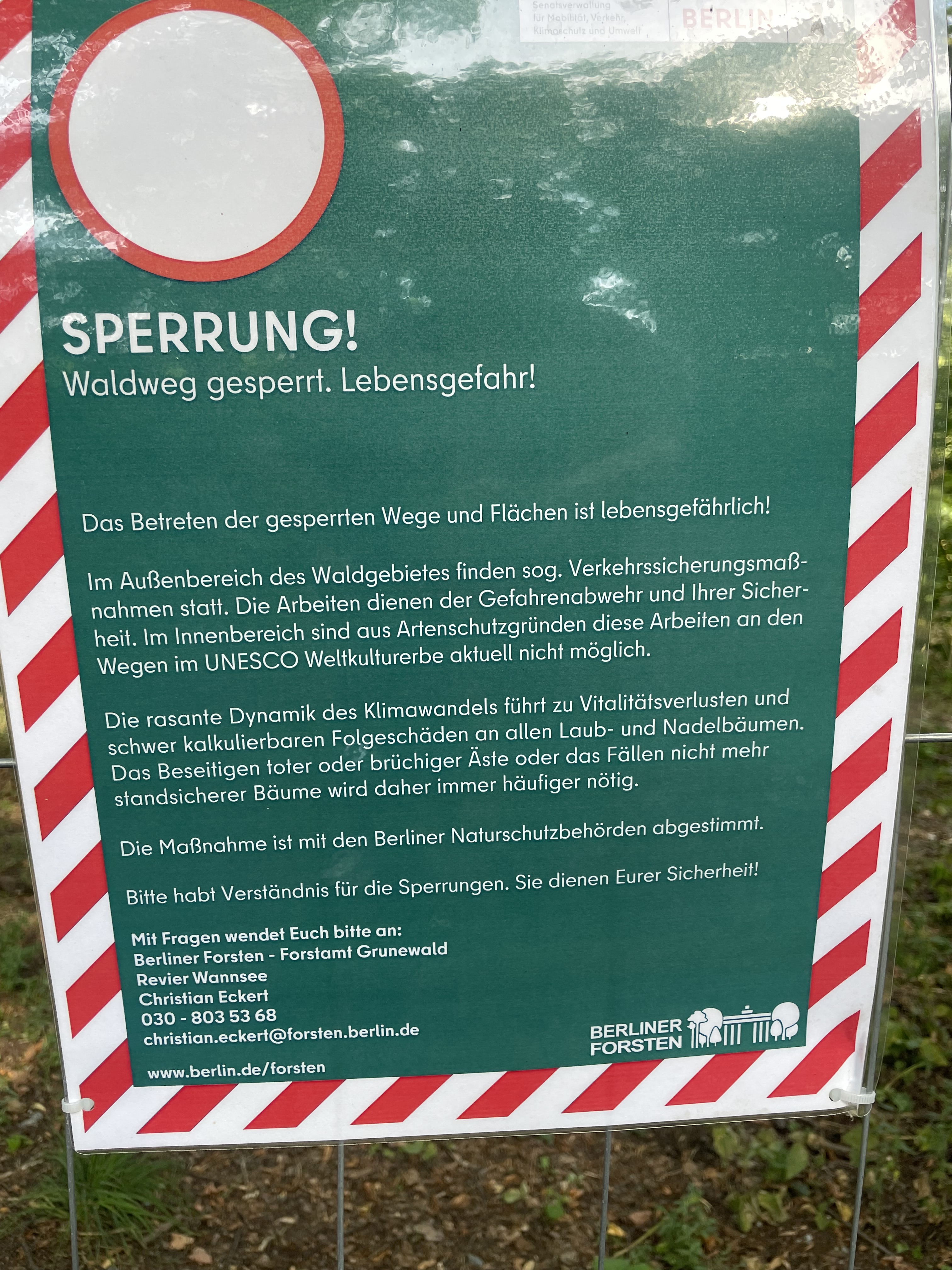 vielen Dank für Ihre Anfrage und Ihr Interesse am Berliner Wald. Ihre Enttäuschung über die Sperrung des Waldgebietes am Böttcherberg kann ich gut verstehen. Die Entscheidung hierzu haben wir uns nicht leichtgemacht. Sie ist nach intensiver Abwägung und fachlichem Austausch – im Sinne der Sicherheit der Waldbesuchenden getroffen worden.